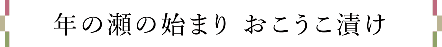 桃山大根が市場に出始めると、杉本家では、年の瀬の仕度が始まります。新しく迎える翌年に向けた「ケ」の“おこうこ漬け”の仕込みです。“おこうこ”とは、京都弁でたくあんのことを言い、江戸時代から杉本家に伝わる暮らしの覚え書き「歳中覚(さいちゅうおぼえ)」にも、おこうこに関しての記述があり、桃山大根を使うのがお決まりです。「日陰干しをしてから塩とぬかで漬け込むんを年内に済ませて、年明けから1週間ほどで新しい“おこうこ”をいただきます。『歳中覚』によると、江戸時代はお茶漬けとおこうこが朝夕の献立の基本でした。漬物専用の小屋があるくらい、毎日の食を支えるおこうこは自家製があたりまえやったんです。」と節子さん。
