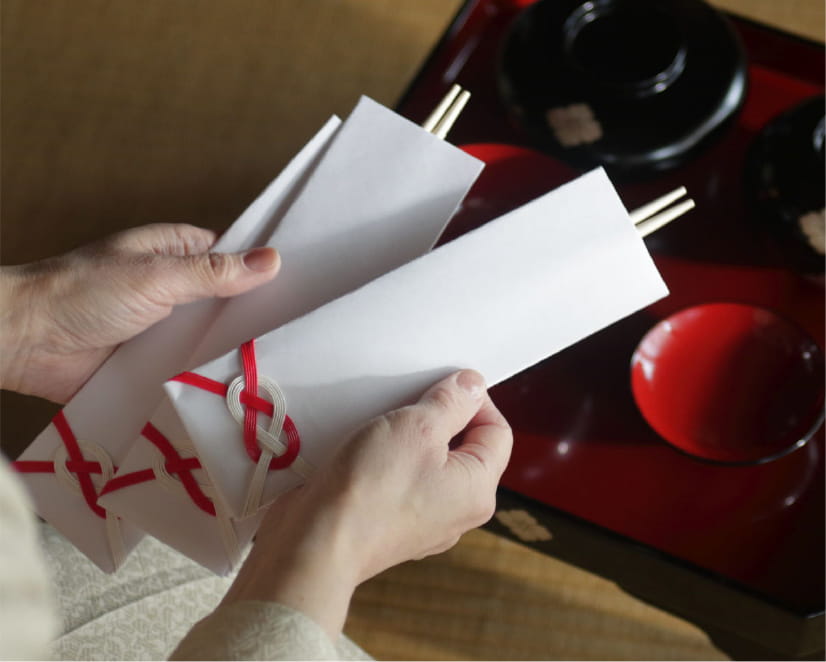 「家族で新年のあいさつを済ませたら、昆布と小梅をいれた大福茶(おおぶくちゃ)、お屠蘇、お雑煮、祝い肴をいただきます。」盛り付けるのは、江戸時代から代々のご先祖様が使ってきた、貝づくし模様の重箱や家紋入りのお椀。そこに新しい祝い箸を用意します。「片方の端は私達、“人”のためのもので、もう一方は神様が使わはるためのものやそうですね。」ご来客がある時には、おもてなしの肴として「煮抜き」を用意します。「京都では、ゆで卵を『煮抜き』と呼ぶんです。煮て煮て“煮抜く”ことが語源なんでしょうね。『歳中覚』にもお客様のおもてなしには卵、と書かれています。今は特別なものでなくなりましたが、昔は希少で、高価なおもてなしの肴としてお出ししていたのですね。」