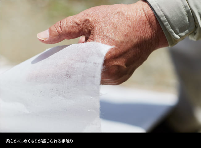 「水やネリの具合は、毎日違いますからね。」とおっしゃるのは久子さん。「毎日違う自分自身も、紙にあらわれます。穏やかな気持ちなら穏やかな紙になるし、気もそぞろやったら紙が乱れます。何十年やっていても、『今日こそは』と思います。」という久子さんの言葉に、布谷さんはうなずきます。